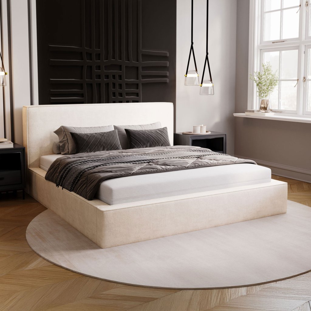 Čalúnená posteľ ALMA v minimalistickom prevedení.