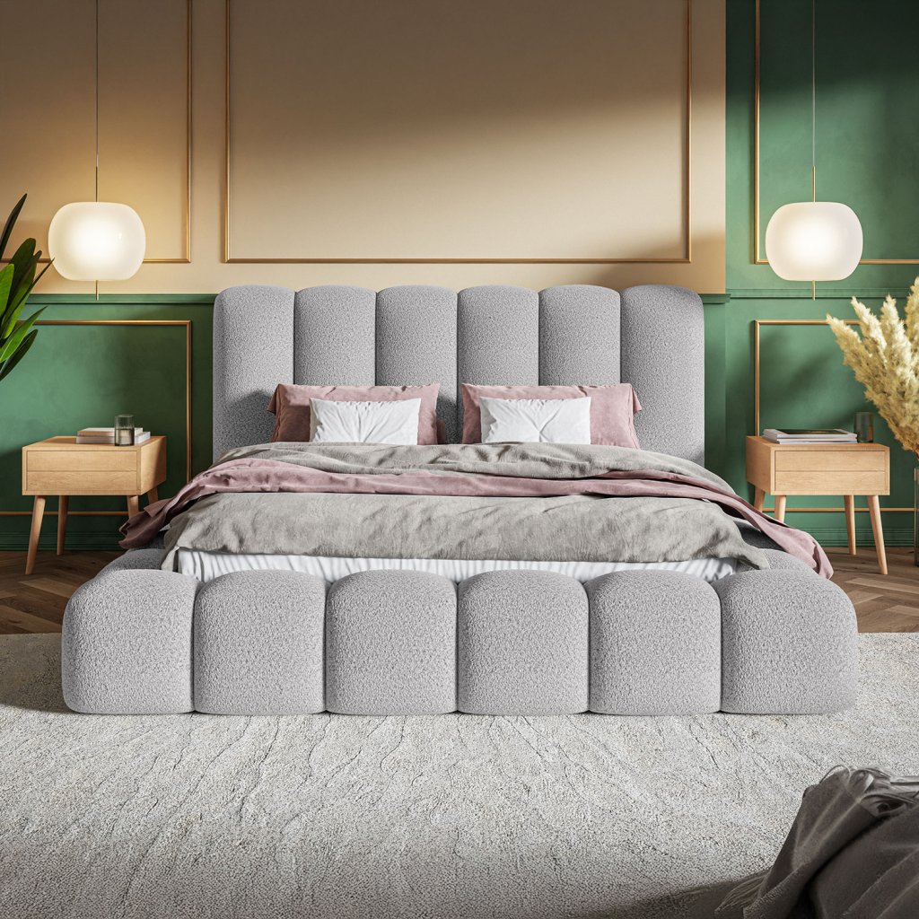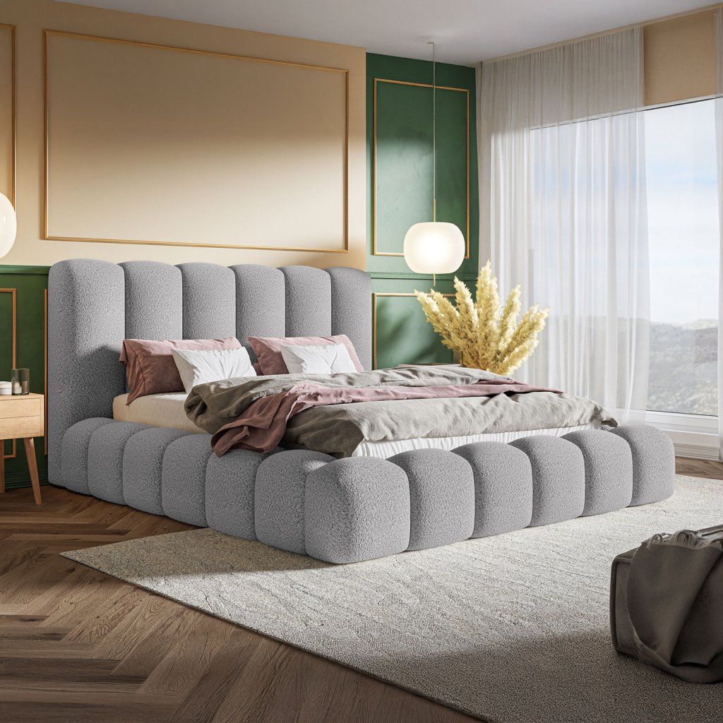 Dizajnová čalúnená posteľ ELEGANZA očarí svojimi ladnými líniami v rovnakom dizajne zo všetkých strán. Ponúka priestranný úložný priestor na posteľnú bielizeň, kvalitnú konštrukciu a výber roštu podľa preferencií.