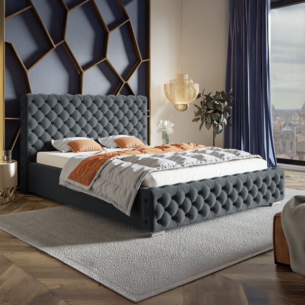 Čalúnená posteľ ELLA osloví moderným dizajnom a elegantným vertikálnym prešívaním čela, ktoré dodáva spálni nadčasový vzhľad. Vysoké čelo poskytuje príjemnú oporu pri sedení, čítaní či oddychu. Posteľ disponuje priestranným úložným priestorom, ktorý jednoducho otvoríte pomocou výklopného mechanizmu. K dispozícii je variant s dreveným roštom s pružinami alebo s kovovým roštom s plynovými piestami, podľa vašich preferencií. Posteľ ELLA je skvelou voľbou pre každodenné používanie – ponúka pohodlie, praktické riešenia a štýlový dizajn v jednom.