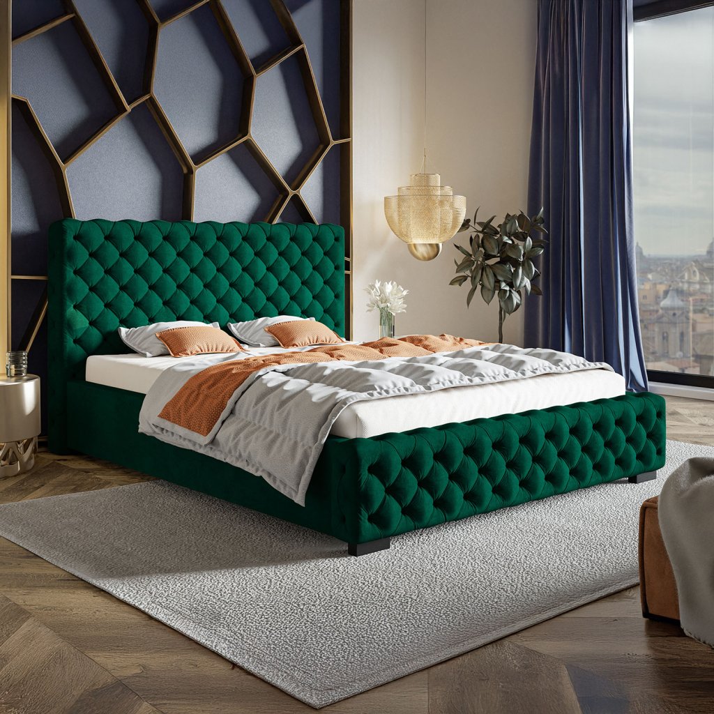 Čalúnená posteľ ELLA osloví moderným dizajnom a elegantným vertikálnym prešívaním čela, ktoré dodáva spálni nadčasový vzhľad. Vysoké čelo poskytuje príjemnú oporu pri sedení, čítaní či oddychu. Posteľ disponuje priestranným úložným priestorom, ktorý jednoducho otvoríte pomocou výklopného mechanizmu. K dispozícii je variant s dreveným roštom s pružinami alebo s kovovým roštom s plynovými piestami, podľa vašich preferencií. Posteľ ELLA je skvelou voľbou pre každodenné používanie – ponúka pohodlie, praktické riešenia a štýlový dizajn v jednom.