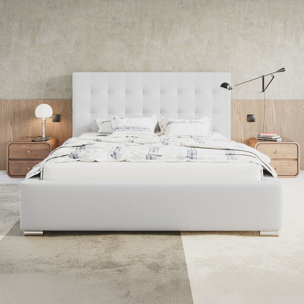 Dizajnová čalúnená posteľ ELSA zaujme svojou modernou eleganciou a výrazným hlboko prešívaným čelom, ktoré pôsobí luxusne, no zároveň decentne. Vďaka čistým líniám a jemnému textilnému poťahu v neutrálnom tóne sa skvele hodí do vkusne zariadenej spálne. Posteľ ELSA ponúka nielen pohodlné lôžko, ale aj praktický úložný priestor na posteľnú bielizeň. Vyznačuje sa stabilnou a pevnou konštrukciou, ako aj možnosťou výberu roštu podľa vašich potrieb. ELSA je ideálnym spojením pohodlia, funkčnosti a štýlového vzhľadu, ktorý zútulní každú modernú spálňu.
