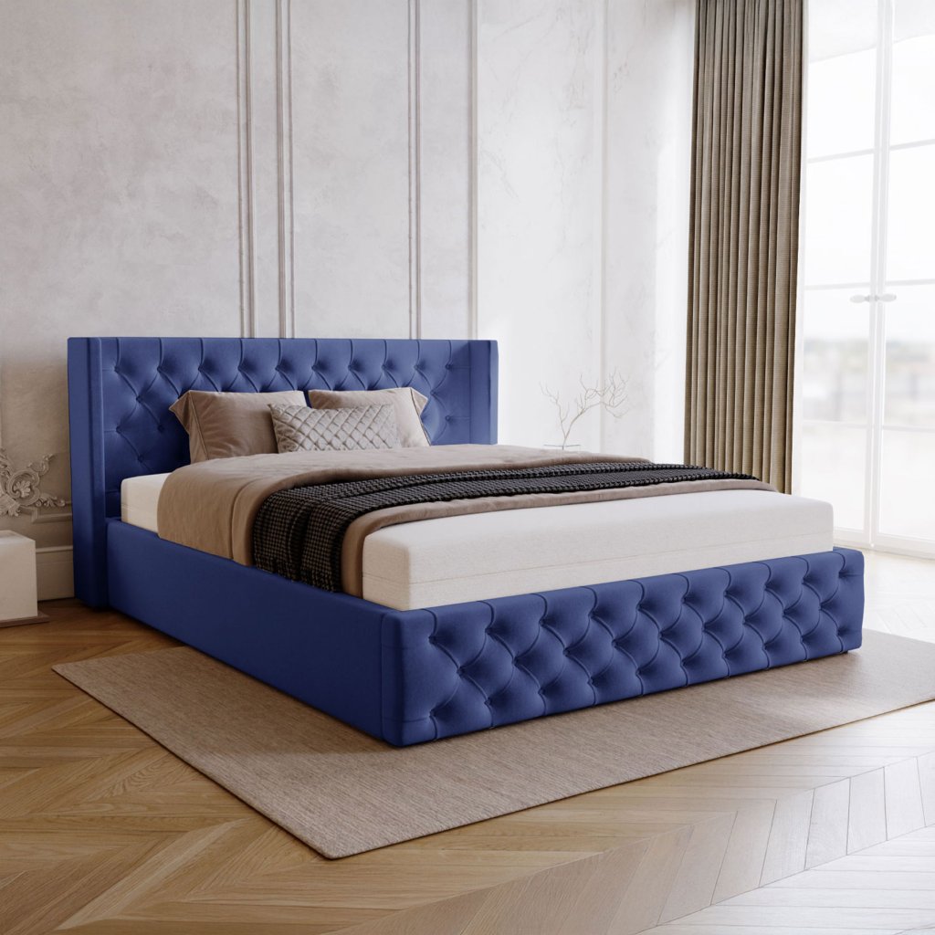 Elegantná čalúnená posteľ ESME v štýle chesterfield sa stane dominantou v spálni.