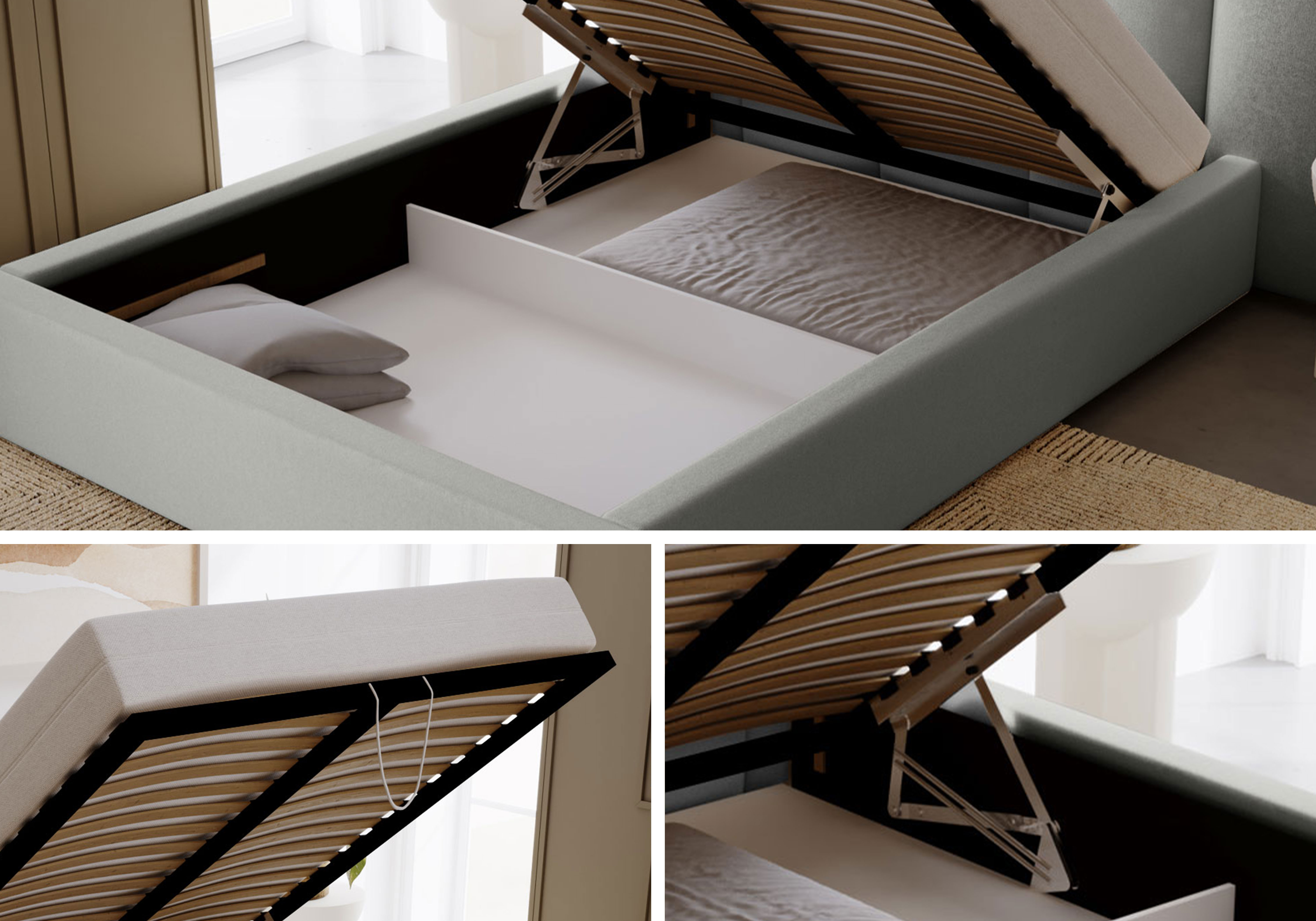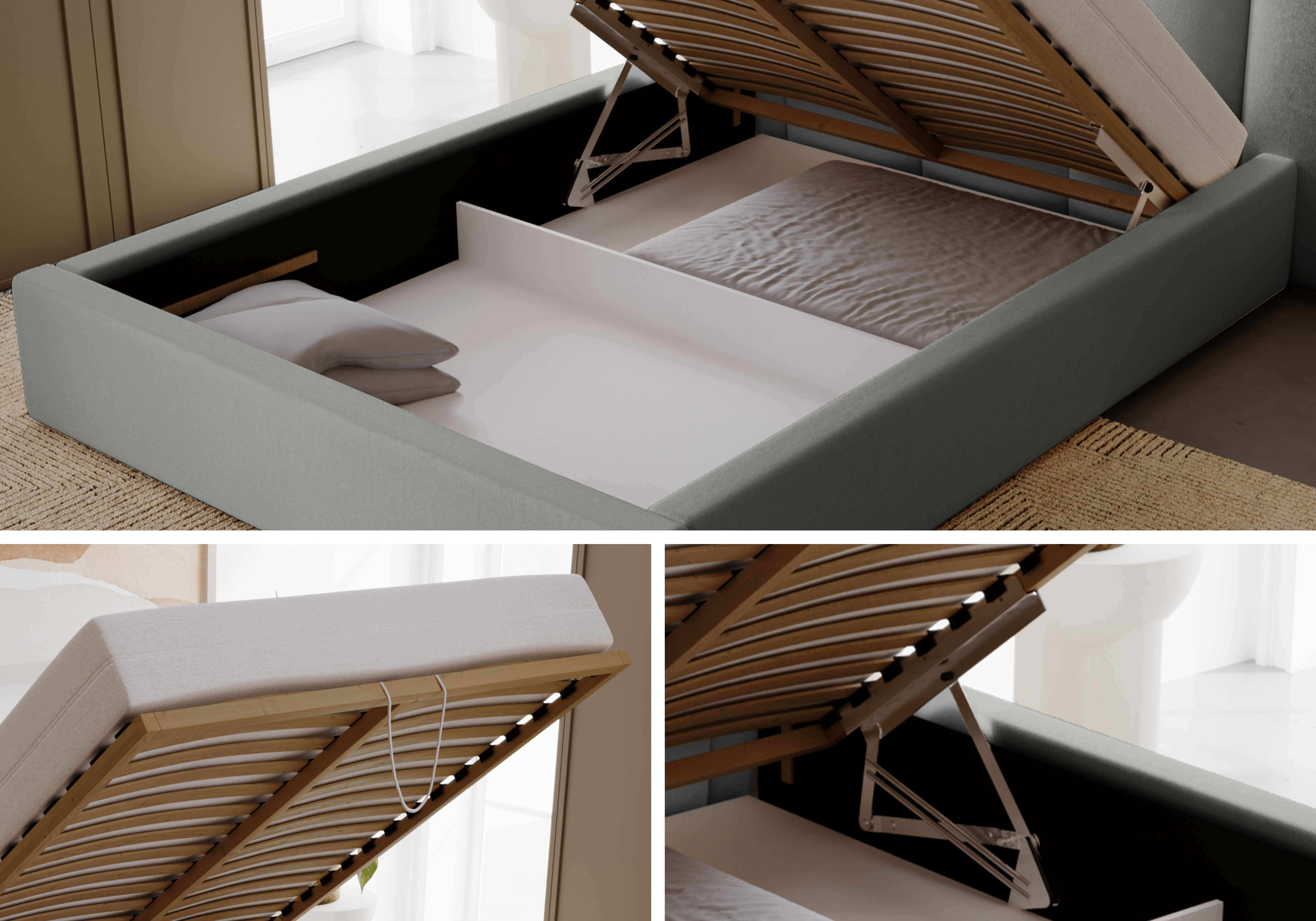 V základnej cene postele je zahrnutý úložný priestor a výklopný rošt, čo z nej robí praktický aj elegantný nábytok. Ponúkame ju v rôznych veľkostiach – 120x200 cm, 140x200 cm, 160x200 cm a 180x200 cm. Okrem toho ponúkame široký výber farieb, z ktorých si môžete vybrať, a vašu posteľ vyrobíme na mieru podľa vašich preferencií.
