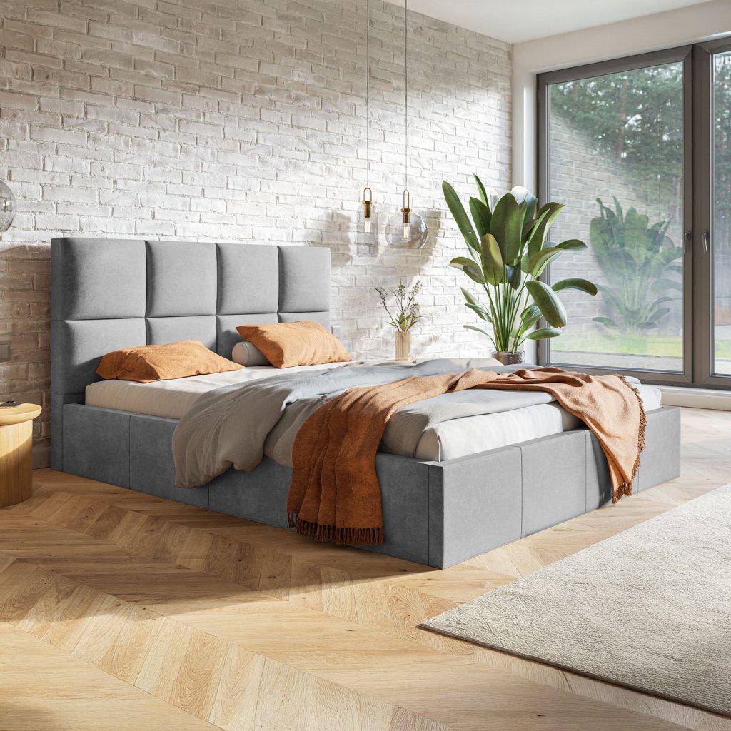 Dizajnová čalúnená posteľ ILMA vyniká moderným vzhľadom a elegantne prešitým čelom, ktoré vnáša do spálne nádych sofistikovanosti. Minimalistický dizajn z každého uhla podčiarkuje jej nadčasovosť. Posteľ ponúka veľkorysý úložný priestor na posteľnú bielizeň, pevnú konštrukciu a možnosť výberu roštu podľa vašich preferencií.