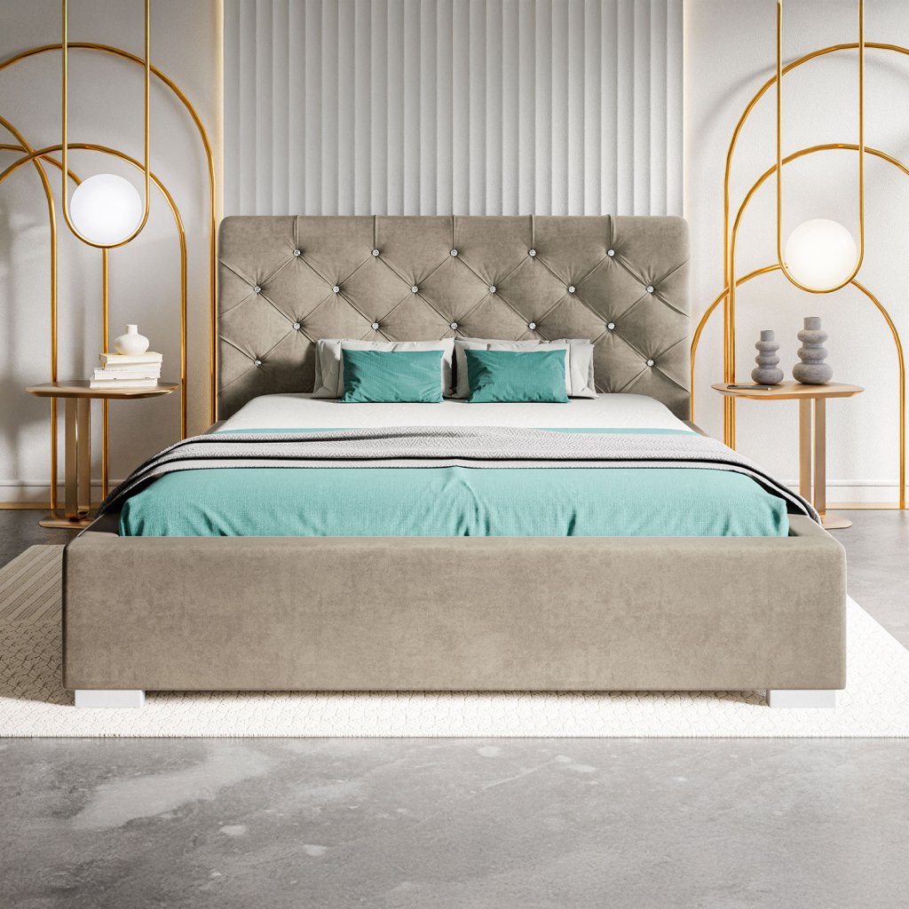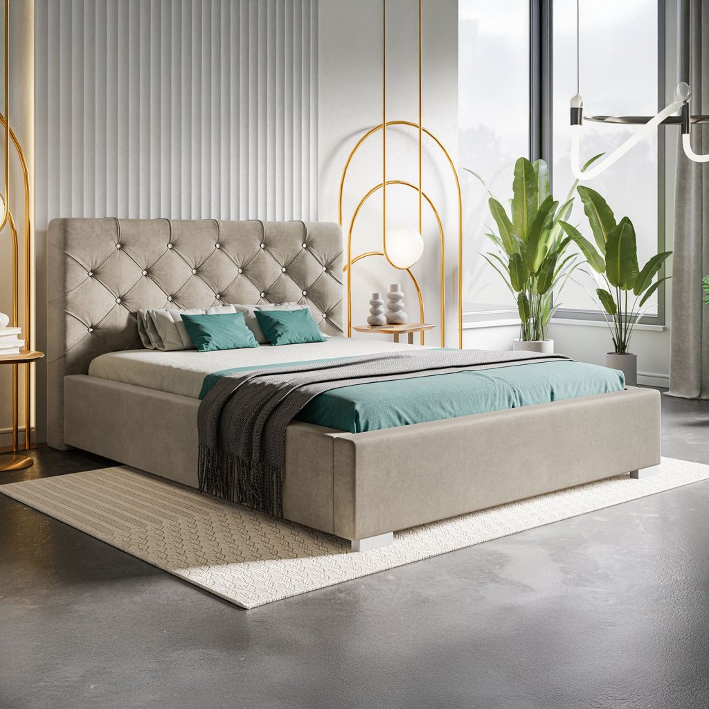 Čalúnená posteľ IRIS zaujme elegantným vzhľadom s diamantovým prešívaním, ktoré dodáva spálni štýlový a moderný charakter. Vysoké čelo poskytuje pohodlnú oporu pri sedení, čítaní alebo relaxácii. Priestranný úložný priestor pod matracom je ľahko prístupný vďaka praktickému výklopnému mechanizmu. Na výber máte drevený alebo kovový rošt, v závislosti od vašich preferencií. Posteľ IRIS spája komfort, funkčnosť a estetiku v jednom nadčasovom dizajne.