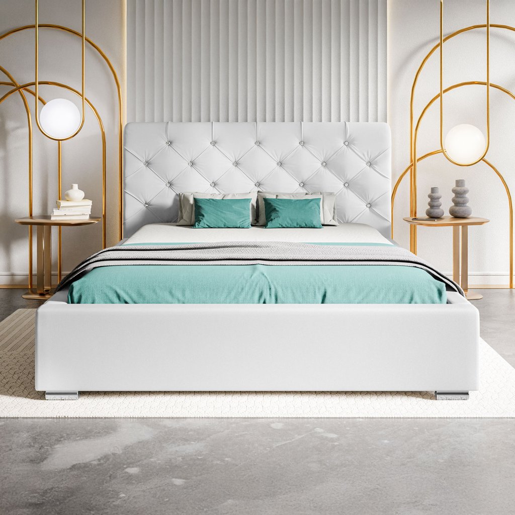 Čalúnená posteľ IRIS zaujme elegantným vzhľadom s diamantovým prešívaním, ktoré dodáva spálni štýlový a moderný charakter. Vysoké čelo poskytuje pohodlnú oporu pri sedení, čítaní alebo relaxácii. Priestranný úložný priestor pod matracom je ľahko prístupný vďaka praktickému výklopnému mechanizmu. Na výber máte drevený alebo kovový rošt, v závislosti od vašich preferencií. Posteľ IRIS spája komfort, funkčnosť a estetiku v jednom nadčasovom dizajne.