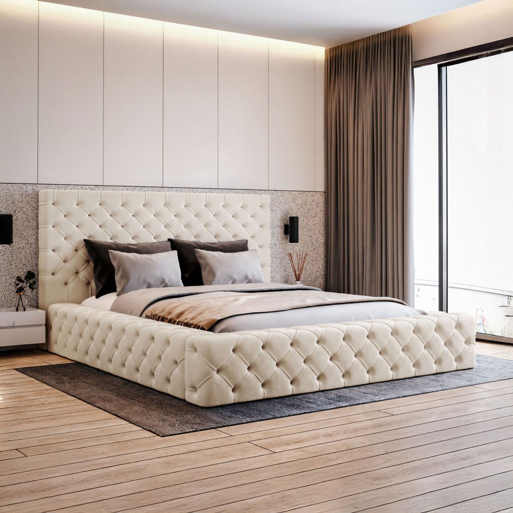 Čalúnená posteľ ISIS v štýle chesterfield.