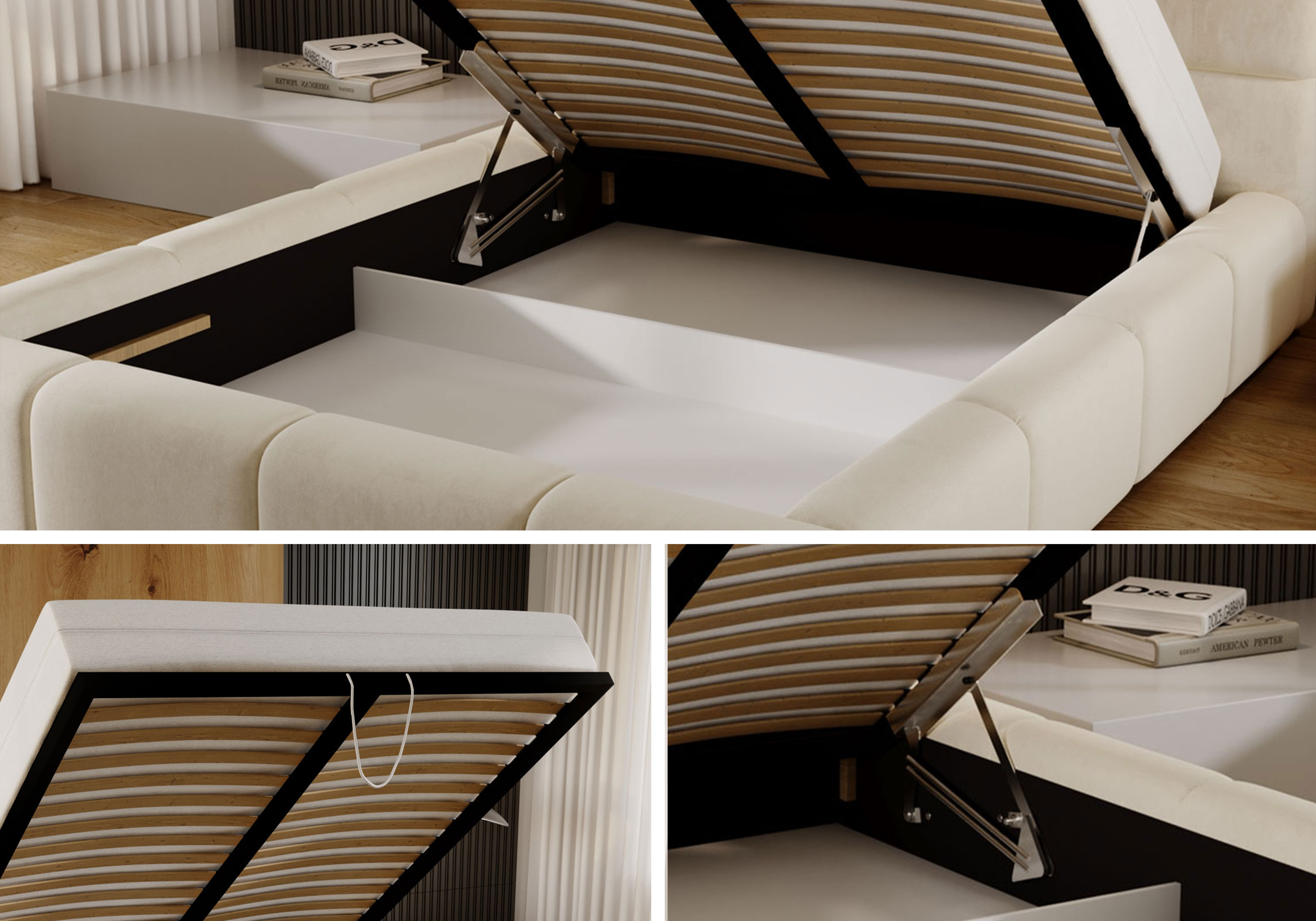 V základnej cene postele je zahrnutý úložný priestor a výklopný rošt, čo z nej robí praktický aj elegantný nábytok. Ponúkame ju v rôznych veľkostiach – 120x200 cm, 140x200 cm, 160x200 cm a 180x200 cm. Okrem toho ponúkame široký výber farieb, z ktorých si môžete vybrať, a vašu posteľ vyrobíme na mieru podľa vašich preferencií.