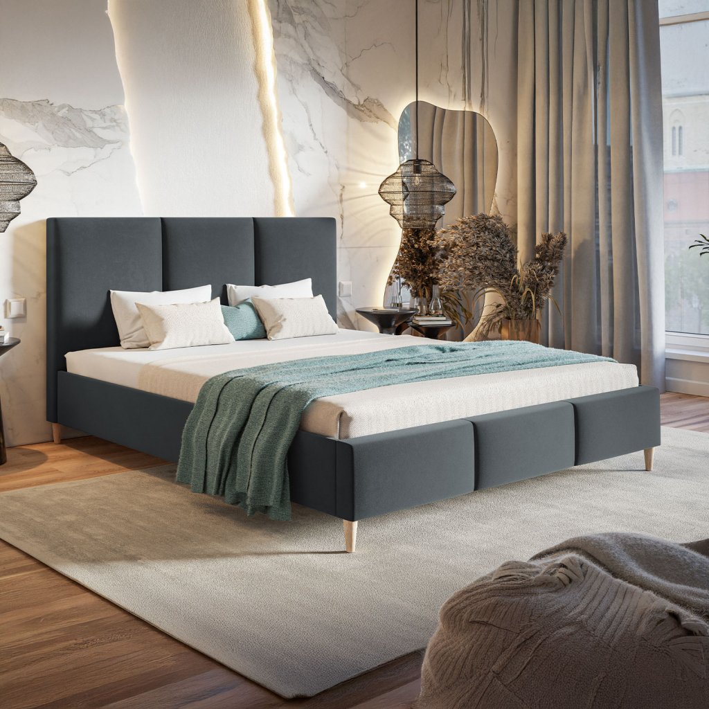 Posteľ KARA zaujme svojim elegantným a moderným dizajnom, ktorého dominantou je výrazné štvorcové prešívanie čela. Tento detail jej dodáva štýlový, no zároveň nenápadný vzhľad, ktorý sa hodí do každej štýlovo zariadenej spálne. Svojimi čistými líniami a minimalistickým prevedením podčiarkuje nadčasový charakter. Vďaka stabilnej a pevnej konštrukcii a možnosti voľby roštu podľa vašich predstáv spája posteľ KARA komfort a vkusný dizajn v jednom.