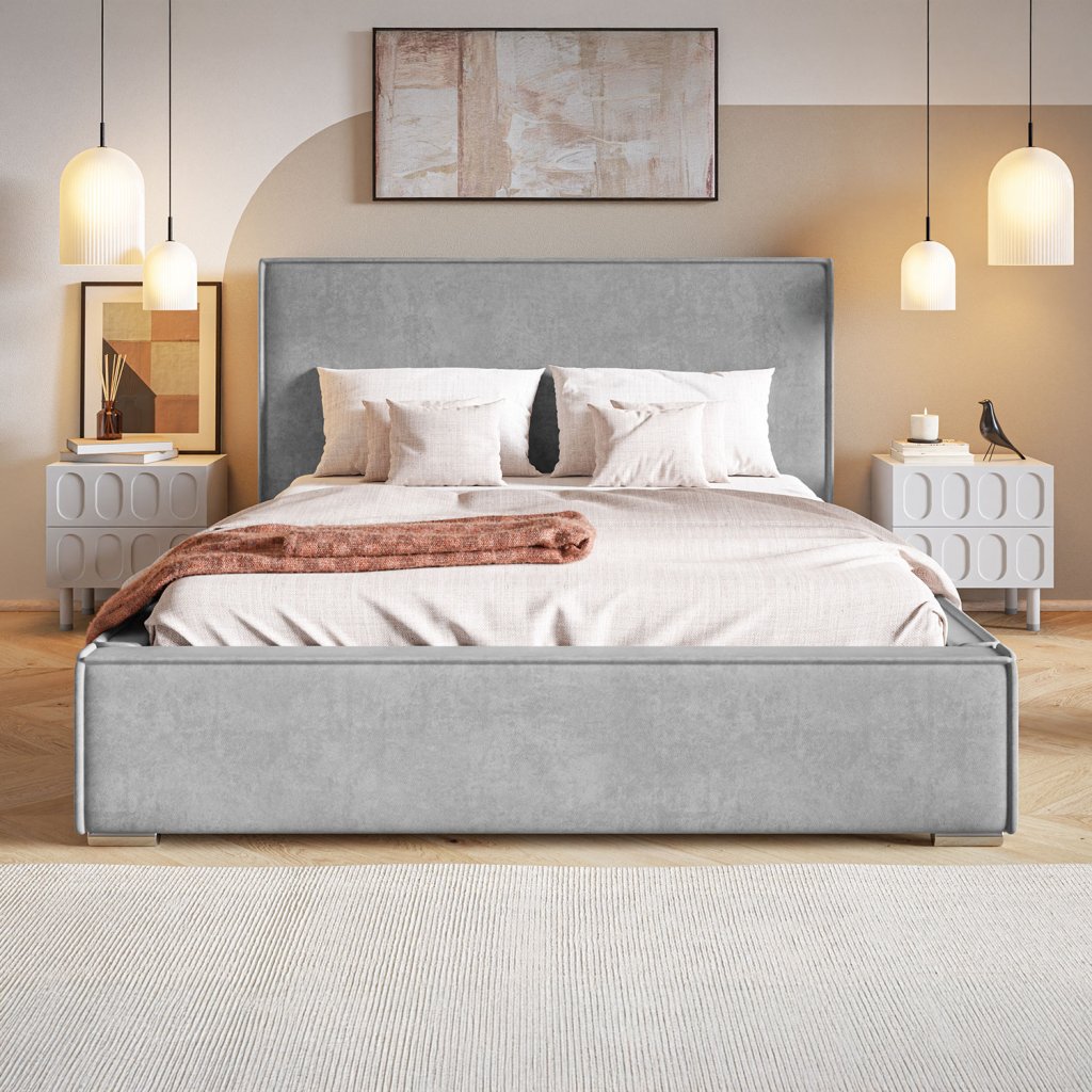 Čalúnená posteľ LARA zaujme moderným vzhľadom a praktickými funkciami. Vysoké čelo poskytuje pohodlnú oporu pri čítaní alebo relaxácii. Súčasťou postele je priestranný úložný priestor na lôžkoviny, ktorý ľahko sprístupníte pomocou vyklápacieho mechanizmu. Na výber máte drevený alebo kovový rošt, podľa vašich preferencií. Posteľ LARA je ideálnou kombináciou štýlu, pohodlia a funkčnosti pre každodenné používanie.