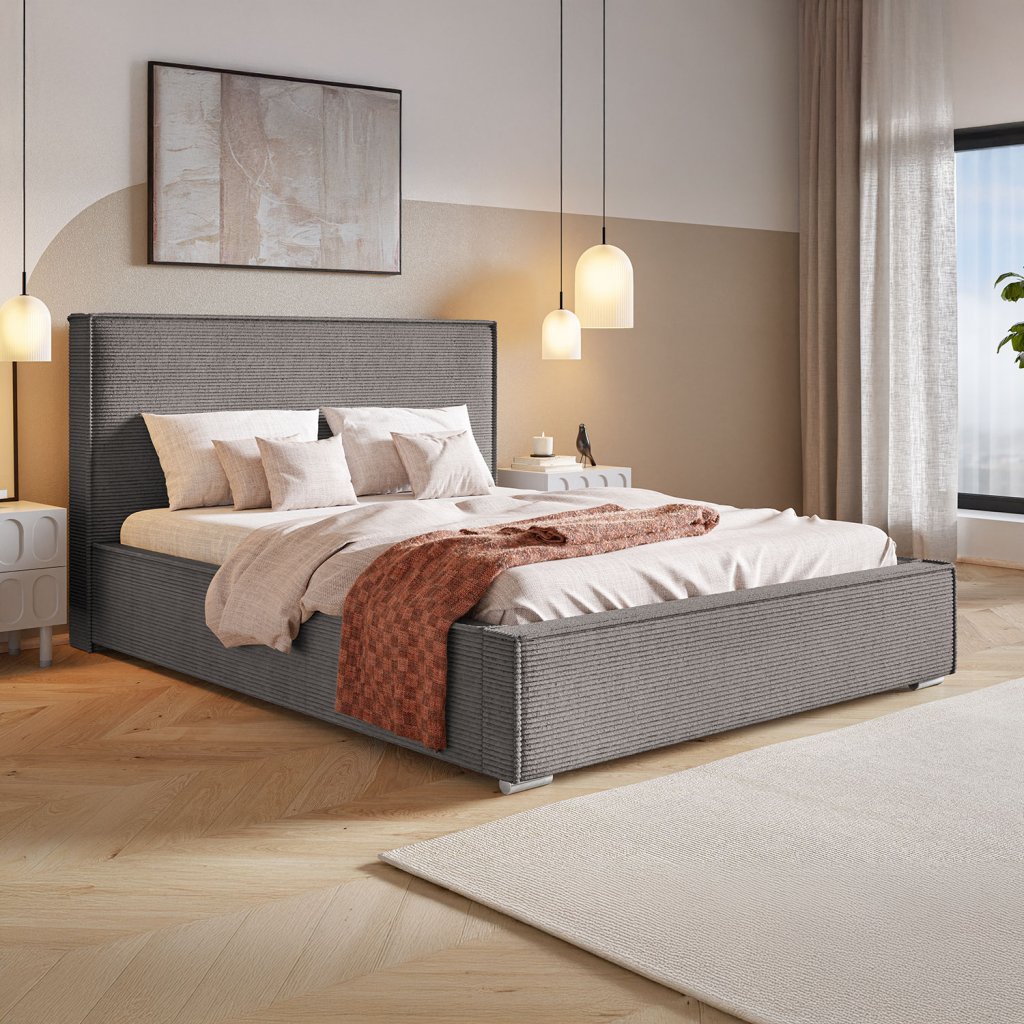 Čalúnená posteľ LARA zaujme moderným vzhľadom a praktickými funkciami. Vysoké čelo poskytuje pohodlnú oporu pri čítaní alebo relaxácii. Súčasťou postele je priestranný úložný priestor na lôžkoviny, ktorý ľahko sprístupníte pomocou vyklápacieho mechanizmu. Na výber máte drevený alebo kovový rošt, podľa vašich preferencií. Posteľ LARA je ideálnou kombináciou štýlu, pohodlia a funkčnosti pre každodenné používanie.