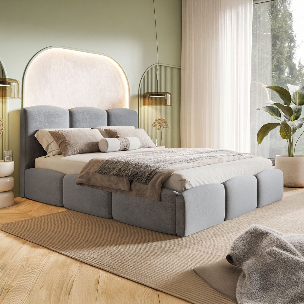 Dizajnová čalúnená posteľ LULA zaujme modernou eleganciou a výrazným vertikálnym prešívaním čela, ktoré pôsobí štýlovo a súčasne decentne. Jej čisté línie a minimalistické spracovanie sú ideálne do vkusne zariadenej spálne. Posteľ ponúka praktický úložný priestor na posteľnú bielizeň, pevnú a stabilnú konštrukciu a možnosť voľby roštu podľa individuálnych potrieb. LULA je dokonalou kombináciou pohodlia, funkčnosti a dizajnu.