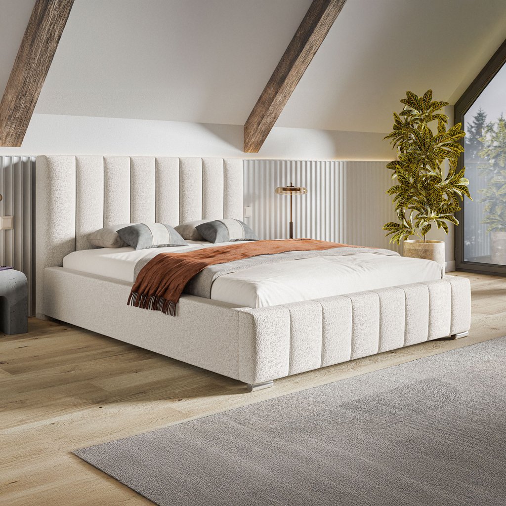 Čalúnená posteľ LUNA zaujme moderným dizajnom s čistými líniami a elegantným prešívaním čela, ktoré dodáva spálni štýlový vzhľad. Vysoké čelo poskytuje pohodlnú oporu pri čítaní alebo relaxácii. Praktický úložný priestor pod celou plochou na spanie je ľahko prístupný vďaka výklopnému mechanizmu. Na výber máte drevený rošt s pružinovým mechanizmom alebo kovový rošt s plynovými piestami, podľa vašich preferencií. Posteľ LUNA je ideálnou kombináciou štýlu, pohodlia a funkčnosti pre každodenné používanie.