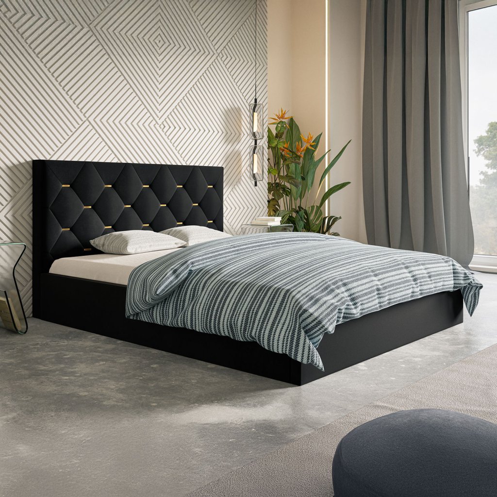 Čalúňená posteľ LYRA prináša elegantný a nadčasový dizajn so svojím prešívaným čelom s jemným vzorom diamantov. Jej harmonické línie a decentné detaily vytvárajú útulnú atmosféru v spálni. V spodnej časti sa nachádza praktický úložný priestor, ktorý poskytuje dostatok miesta na odloženie posteľnej bielizne či sezónnych vecí. Posteľ LYRA je ideálnou voľbou pre tých, ktorí hľadajú kombináciu štýlu a funkčnosti.