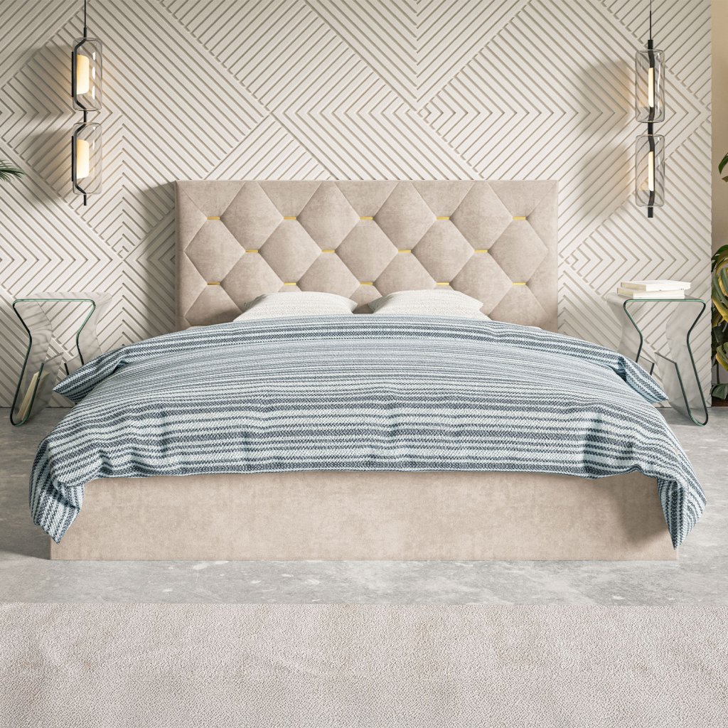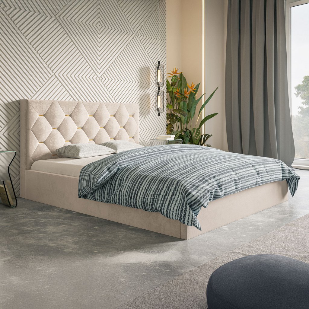 Čalúňená posteľ LYRA prináša elegantný a nadčasový dizajn so svojím prešívaným čelom s jemným vzorom diamantov. Jej harmonické línie a decentné detaily vytvárajú útulnú atmosféru v spálni. V spodnej časti sa nachádza praktický úložný priestor, ktorý poskytuje dostatok miesta na odloženie posteľnej bielizne či sezónnych vecí. Posteľ LYRA je ideálnou voľbou pre tých, ktorí hľadajú kombináciu štýlu a funkčnosti.