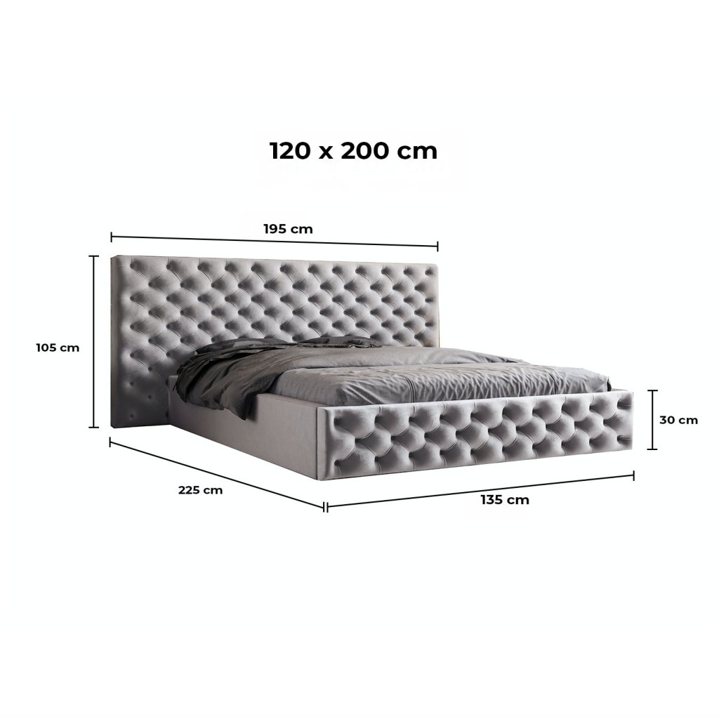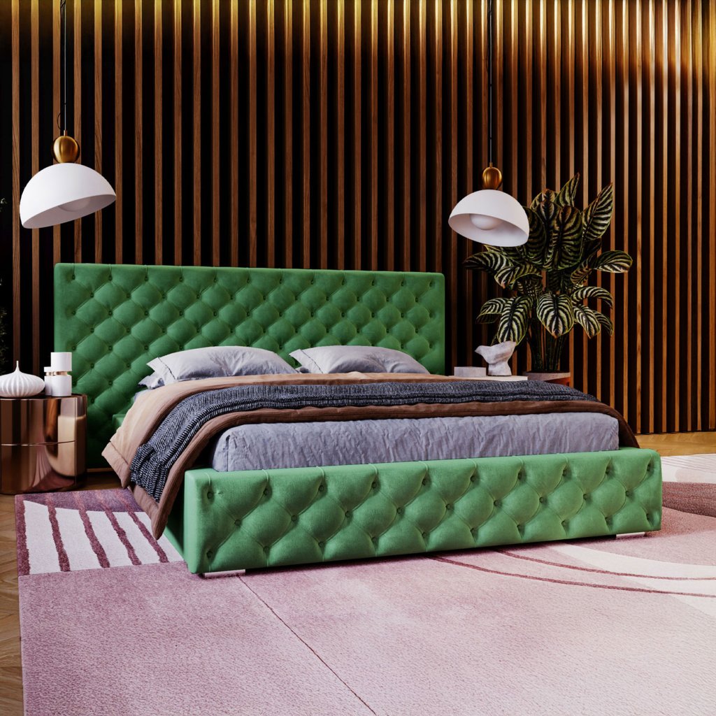 Neprehliadnutelná čalúnená posteľ MIRI v štýle chesterfield.