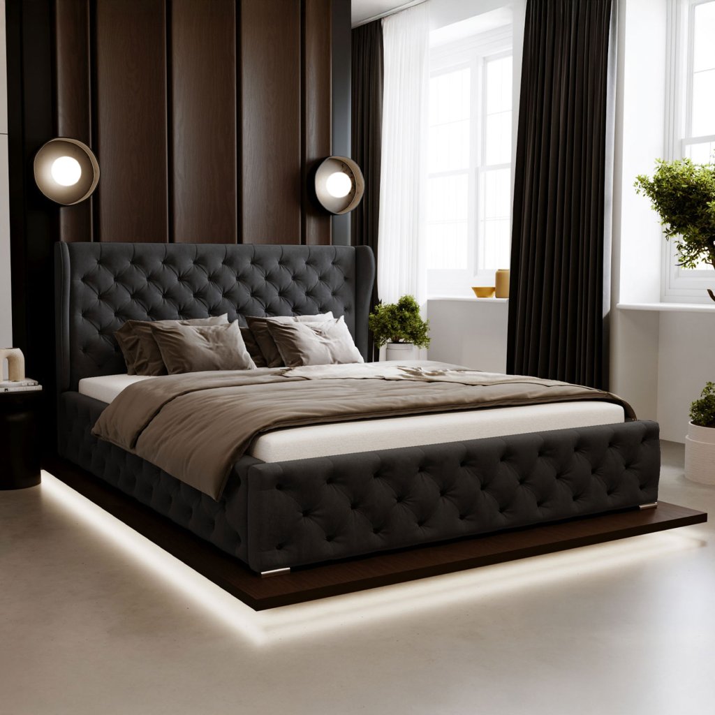 Čalúnená posteľ OLIA v štýle chesterfield.