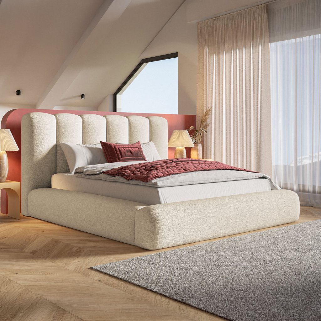 Elegantná čalúnená posteľ PRESTIGE s výrazným mäkko tvarovaným čelom prinesie do vašej spálne nádych luxusu. Ponúka priestranný úložný priestor na posteľnú bielizeň, kvalitnú konštrukciu a výber roštu podľa preferencií.