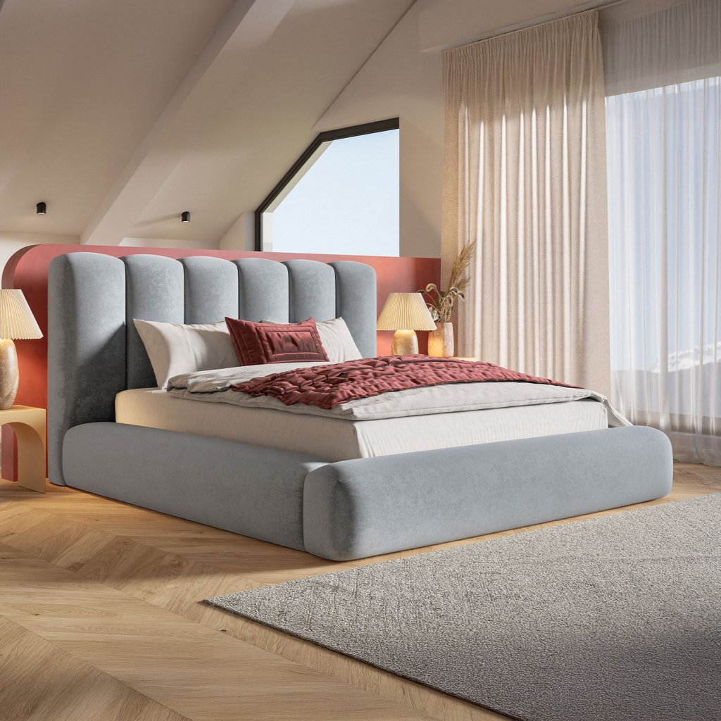 Elegantná čalúnená posteľ PRESTIGE s výrazným mäkko tvarovaným čelom prinesie do vašej spálne nádych luxusu. Ponúka priestranný úložný priestor na posteľnú bielizeň, kvalitnú konštrukciu a výber roštu podľa preferencií.