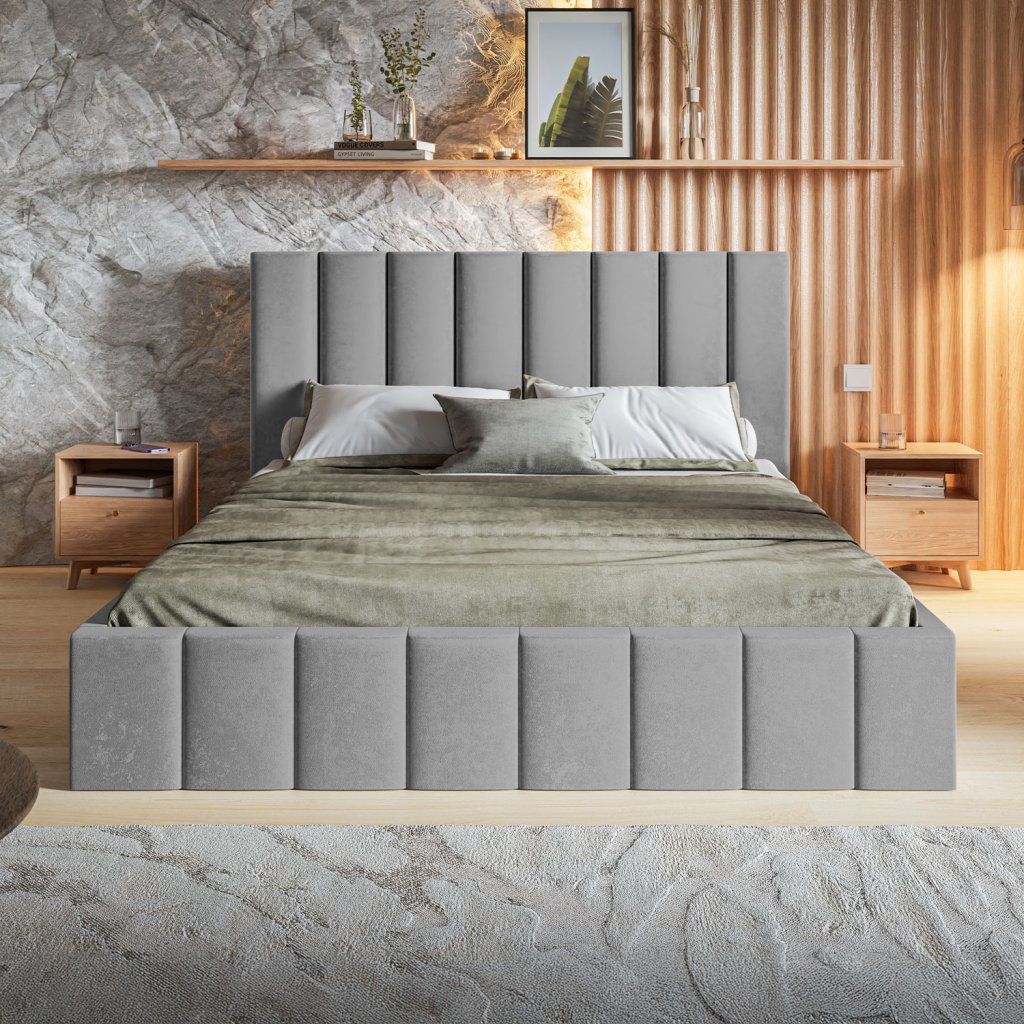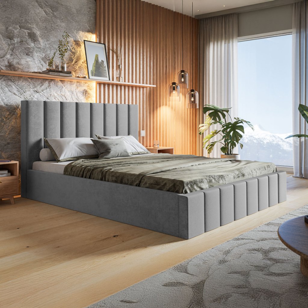 Dizajnová čalúnená posteľ RIJA vyniká svojím symetrickým vertikálnym čalúnením, ktoré jej dodáva harmonický a moderný vzhľad. Elegantná kombinácia jednoduchosti a výrazného štýlu robí z tejto postele výrazný prvok každej spálne. Kvalitná konštrukcia zabezpečuje stabilitu, zatiaľ čo priestranný úložný priestor poskytuje praktické riešenie pre uloženie posteľnej bielizne. RIJA ponúka aj možnosť výberu roštu podľa individuálnych potrieb, čo z nej robí ideálnu voľbu pre náročných zákazníkov.