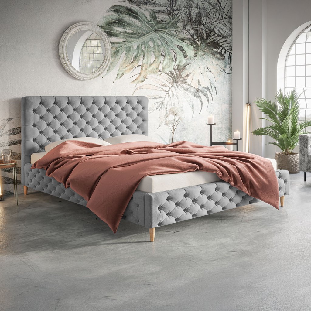 Posteľ RINA je elegantná čalúnená manželská posteľ, ktorá vyniká svojím moderným dizajnom a praktickými funkciami.Jej vysoké čelo je zdobené jemným prešívaním, čo dodáva spálni sofistikovaný vzhľad. Posteľ RINA je ideálnou voľbou pre tých, ktorí hľadajú kombináciu štýlu a pohodlia vo svojej spálni.