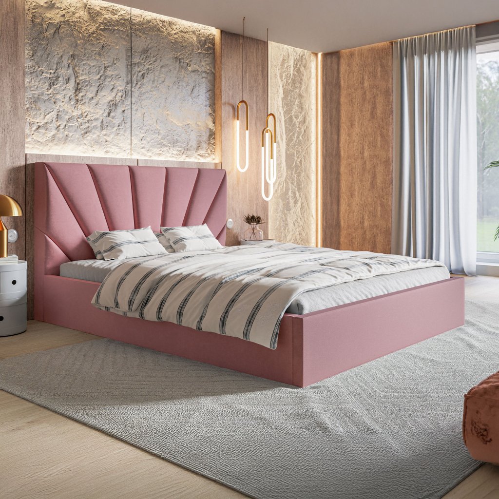 Posteľ SIRA upúta svojím moderným a výrazným dizajnom, ktorý kombinuje eleganciu s originálnymi detailmi. Jej vysoké čelo je vytvorené z panelov usporiadaných do efektu slnečných lúčov, čo dodáva miestnosti dynamický a unikátny vzhľad. V spodnej časti postele sa nachádza praktický úložný priestor, ktorý poskytuje dostatok miesta na uloženie posteľnej bielizne a iných vecí. Posteľ SIRA je skvelou voľbou pre tých, ktorí hľadajú štýlový a funkčný prvok do spálne.