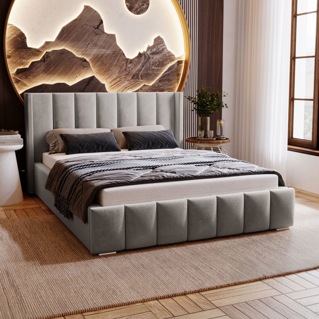 Čalúnená posteľ SISI ako robustný pilier spálne.