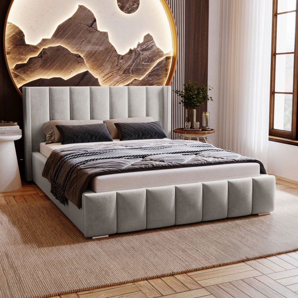 Čalúnená posteľ SISI ako robustný pilier spálne.