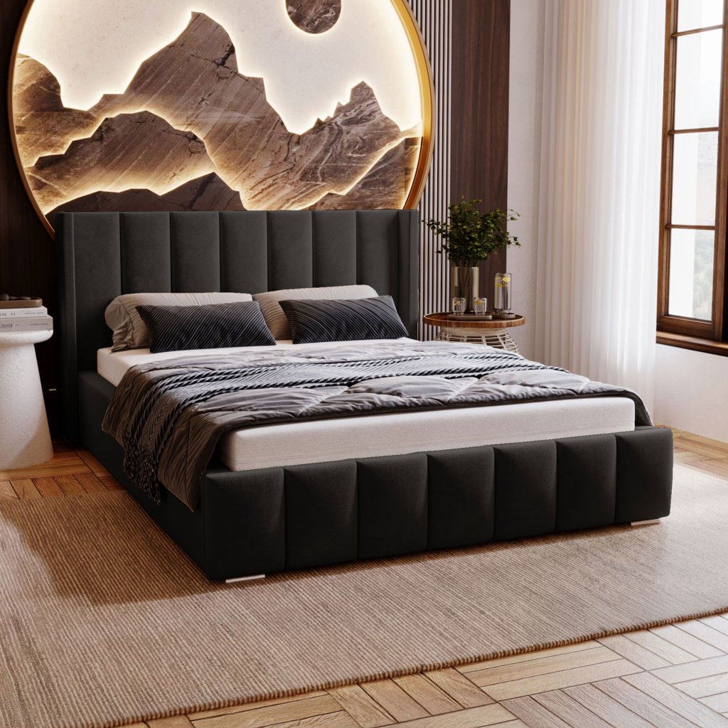 Čalúnená posteľ SISI ako robustný pilier spálne.