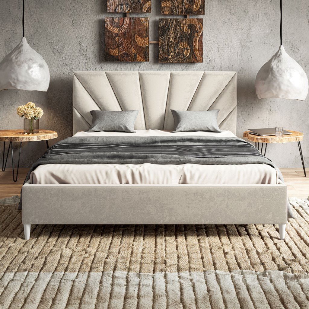 Posteľ TANA je elegantná čalúnená manželská posteľ, ktorá zaujme svojím moderným dizajnom a praktickými funkciami. Jej vysoké čelo je zdobené jemným prešívaním, čo dodáva spálni sofistikovaný vzhľad.