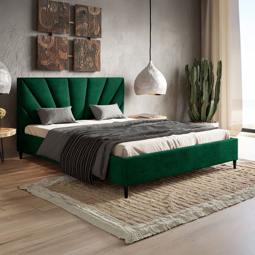 Posteľ TANA je elegantná čalúnená manželská posteľ, ktorá zaujme svojím moderným dizajnom a praktickými funkciami. Jej vysoké čelo je zdobené jemným prešívaním, čo dodáva spálni sofistikovaný vzhľad.
