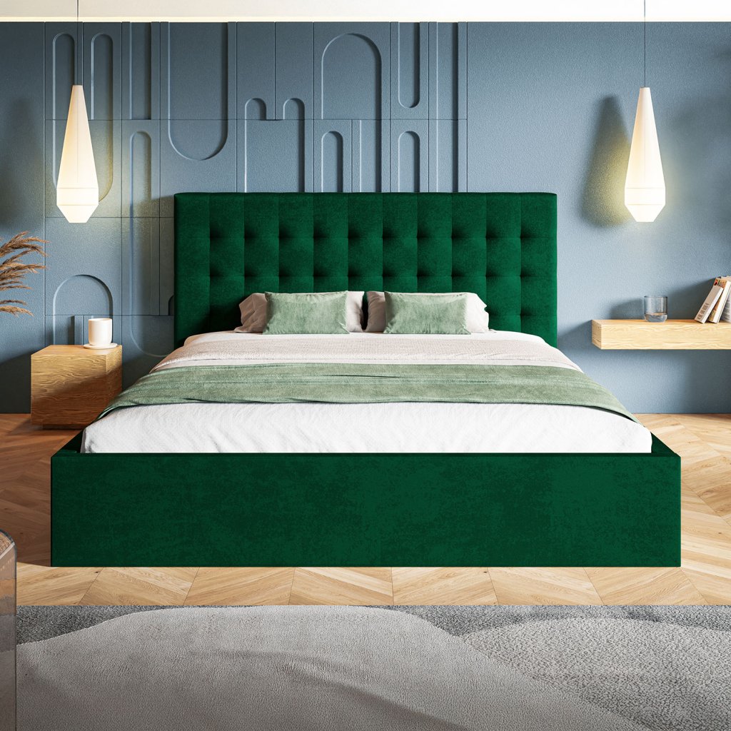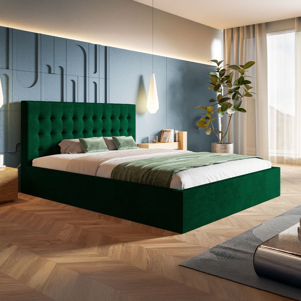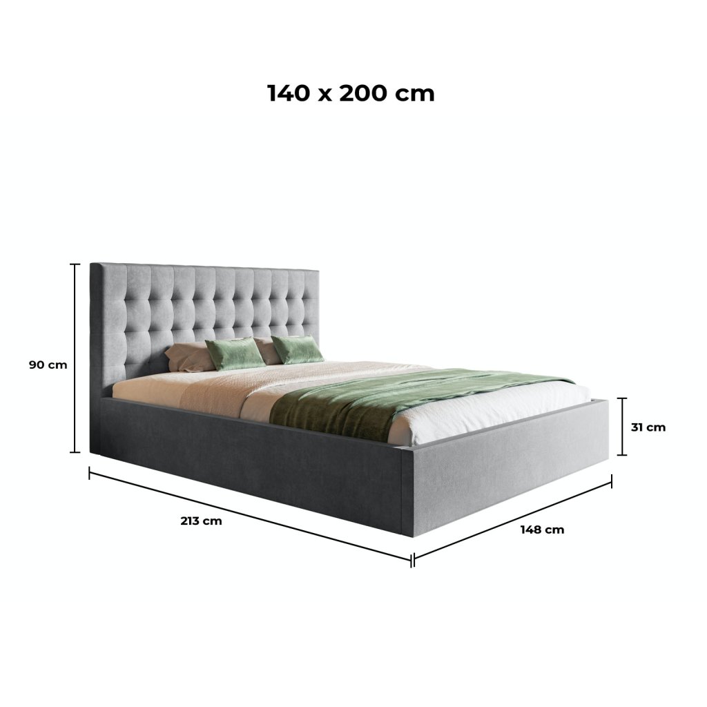 Čalúnená posteľ VEGA zaujme svojím elegantným a moderným dizajnom, ktorý krásne zapadne do každého interiéru. Jej vysoké čelo s výrazným prešívaním dodáva priestoru štýlový a luxusný nádych, zatiaľ čo čisté línie rámu podčiarkujú nadčasový vzhľad. Praktický úložný priestor v spodnej časti postele poskytuje dostatok miesta na uloženie lôžkovín či sezónnych vecí. Táto posteľ spája estetiku a funkčnosť, čím vytvára harmonické a pohodlné prostredie na odpočinok.