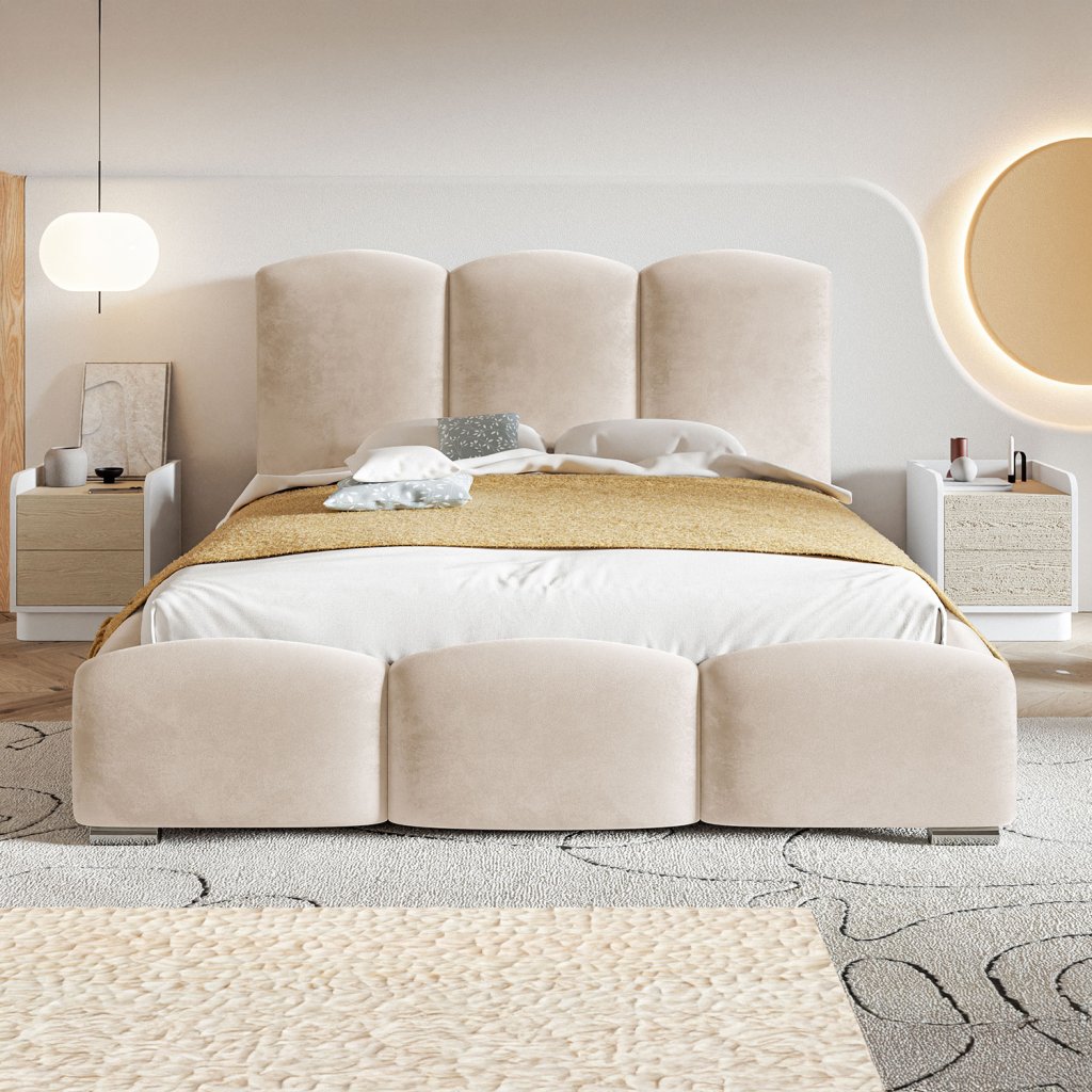 Čalúnená posteľ ZOEY zaujme originálnym oblým tvarovaním a mäkkými líniami, ktoré dodajú spálni štýlový a moderný vzhľad. Trojdielne vysoké čelo poskytuje pohodlnú oporu pri relaxácii a zároveň pôsobí ako výrazný dizajnový prvok. Spodná časť postele nadväzuje na zaoblený tvar, čím vytvára harmonický a útulný dojem.Posteľ ponúka praktický úložný priestor, ktorý ľahko sprístupníte pomocou výklopného mechanizmu. Na výber máte drevený lamelový rošt alebo kovový rošt s piestami, podľa vašich preferencií.ZOEY je ideálnou voľbou pre tých, ktorí chcú spojiť výnimočný dizajn s pohodlím a funkčnosťou v jednom.