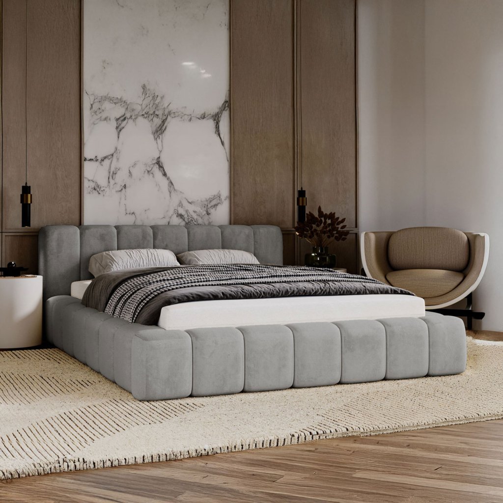 Minimalistická čalúnená posteľ AIYANA dodá vašej spálni nový nádych jedinečnosti.