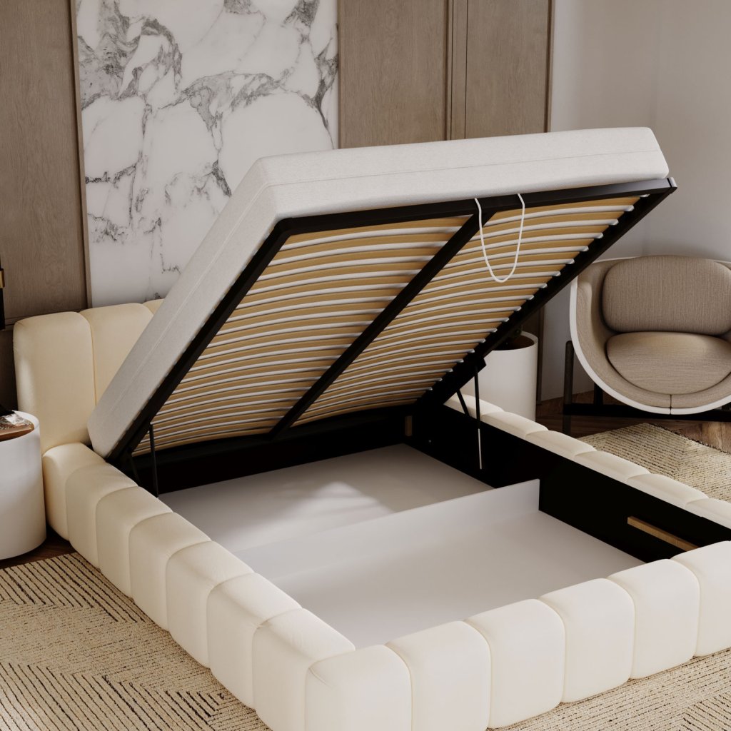 V základnej cene postele je zahrnutý úložný priestor a výklopný rošt, čo z nej robí praktický aj elegantný nábytok. Ponúkame ju v rôznych veľkostiach – 120x200 cm, 140x200 cm, 160x200 cm a 180x200 cm. Okrem toho ponúkame široký výber farieb, z ktorých si môžete vybrať, a vašu posteľ vyrobíme na mieru podľa vašich preferencií.