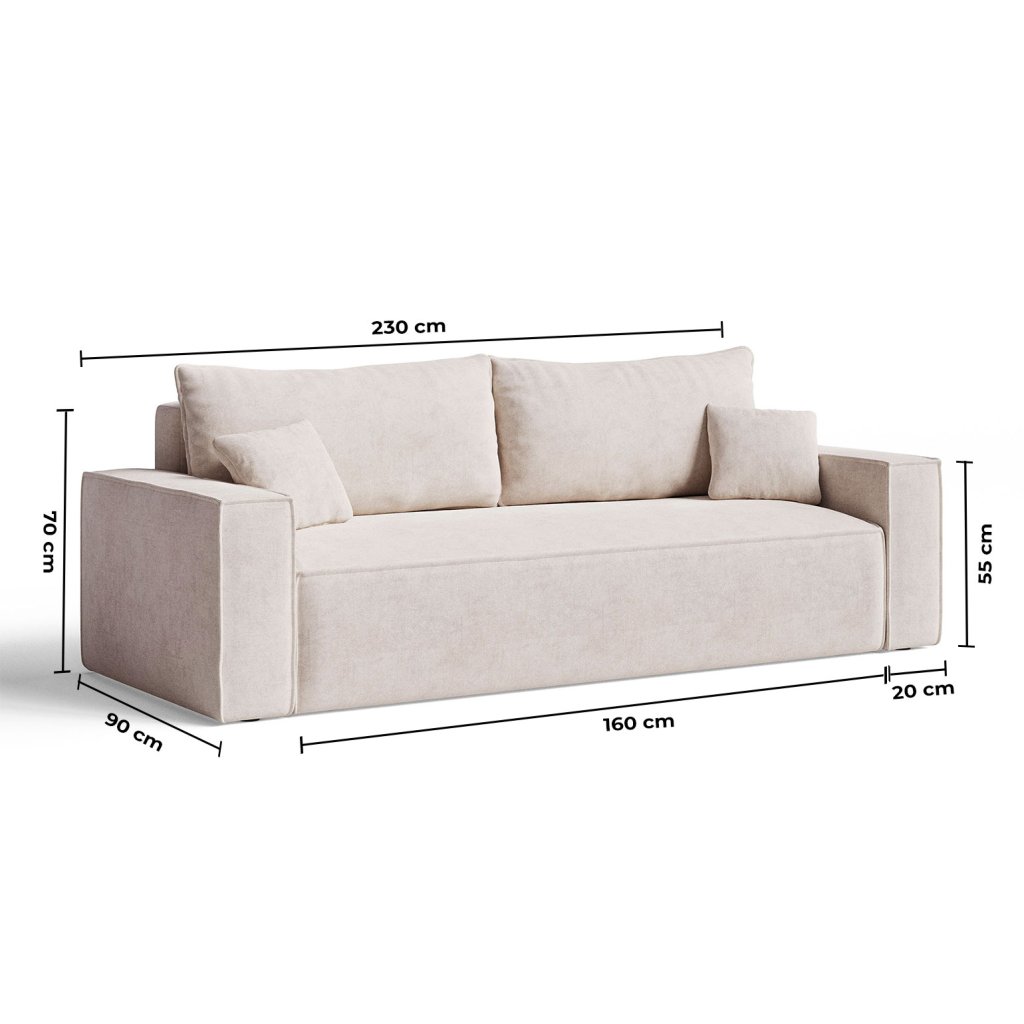 Model THALASSA je elegantná trojmiestna pohovka, ktorá spája štýl, funkčnosť a pohodlie v jednom. Vďaka premyslenému dizajnu ponúka nielen komfortné sedenie, ale aj praktický úložný priestor a možnosť rozloženia na lôžko s rozmermi 148 × 190 cm. Jednoduché línie a moderný vzhľad robia z pohovky THALASSA ideálny doplnok do každého interiéru – či už ako miesto na oddych počas dňa, alebo pohodlné lôžko pre hostí.