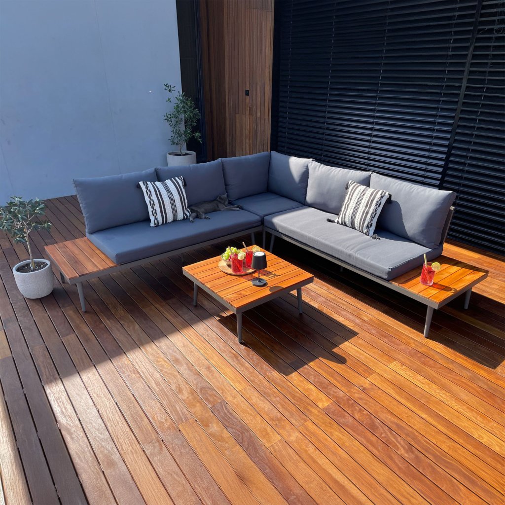Moderný záhradný set MONACO je ideálnou voľbou pre každého, kto hľadá štýlové a pohodlné záhradné sedenie. Spojenie odolnej kovovej konštrukcie, akáciového dreva a mäkkých vankúšov s vodeodolným poťahom vám spríjemní chvíle oddychu na terase, balkóne či záhrade.